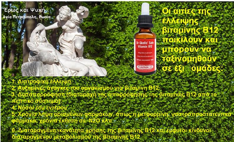 Οι αιτίες της έλλειψης βιταμίνης B12 ποικίλουν και μπορούν να ταξινομηθούν σε έξι ομάδες: